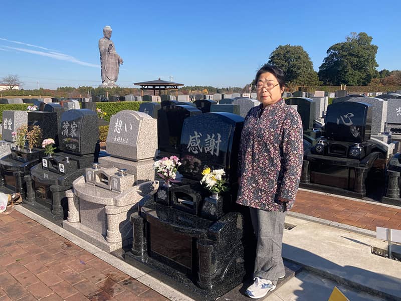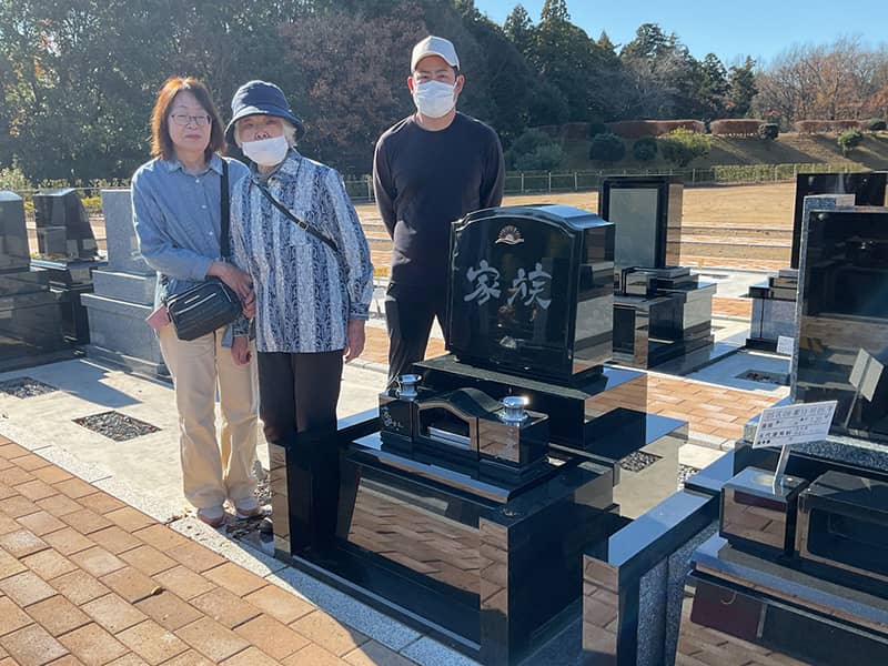 主⼈を亡くし、息⼦と⼆⼈で家の近くでお墓を探して何ヶ所も回りましたが、なかなか納得のできる場所が⾒つかりませんでした。私たちは将来の負担がない「永代供養」を希望していたため、こちらの“永代護持”という制度が決め⼿になりました。⼦どもや親族に迷惑をかけることなく、墓じまいや後継者の⼼配がいらないという点にとても安⼼でき、その⽇のうちに場所や⽯種、形まで不思議なくらいすんなり決まりました。